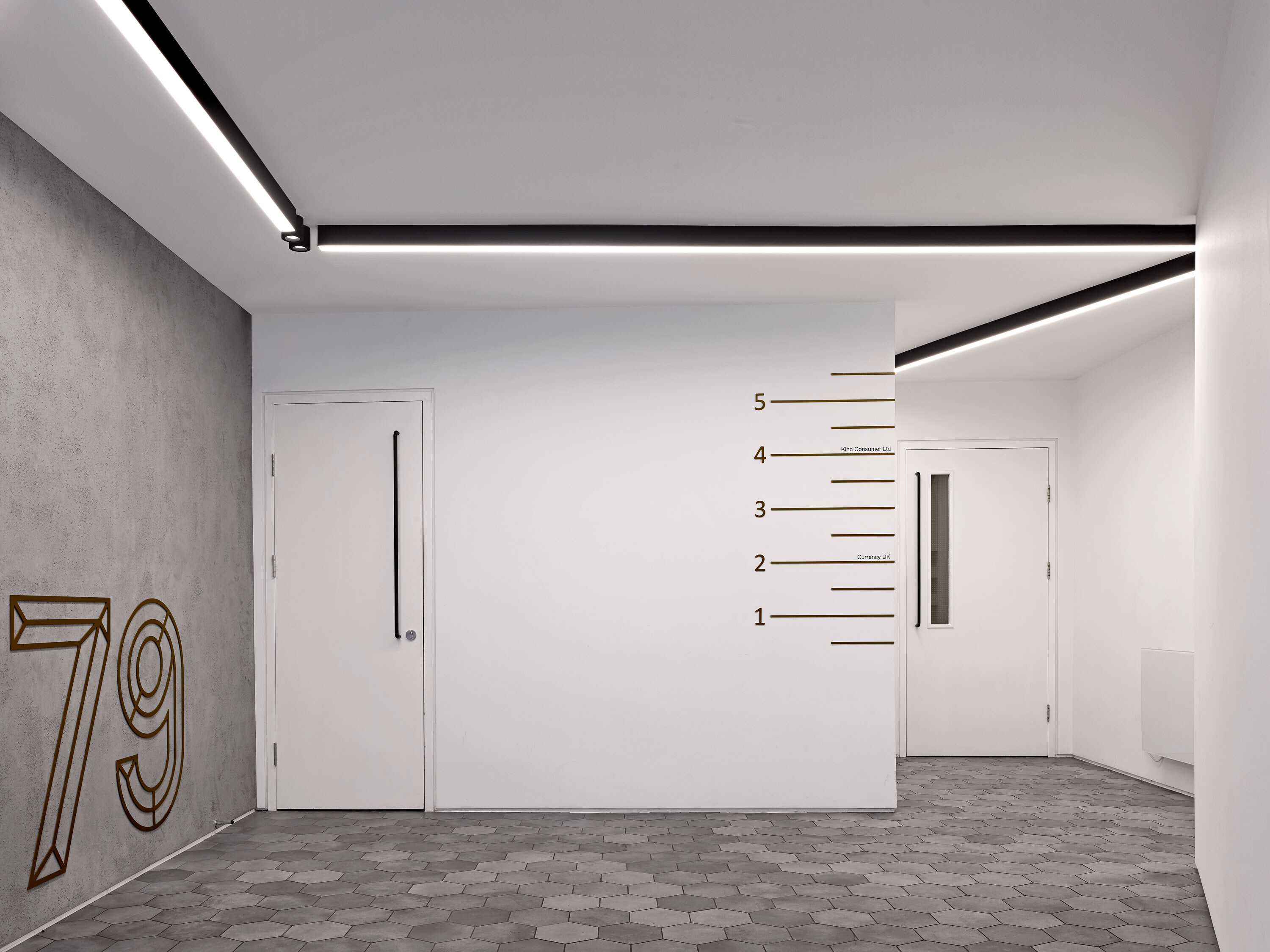 - Reconfiguration of existing oversized reception to create a business lounge